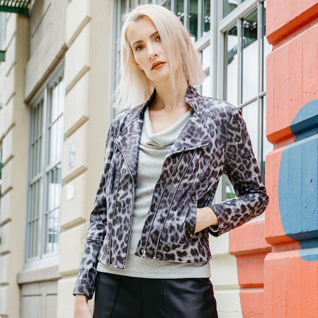 Liquid Leather™ Textured Double Zip Pocket Jacket - Charcoal Cheetah - Final Sale!