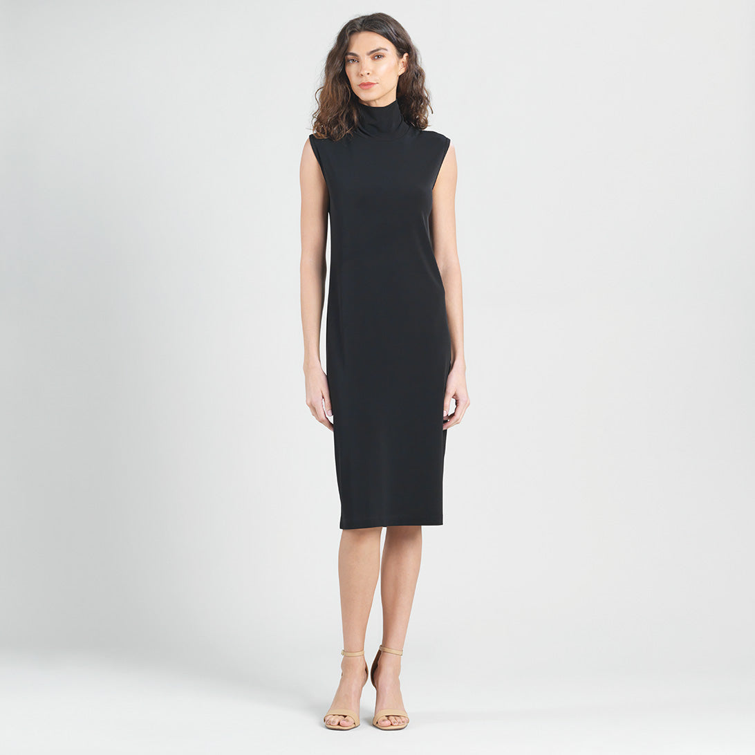 Lightweight Ponte - High Neck Cap Sleeve Midi Dress - Black - Final Sale!