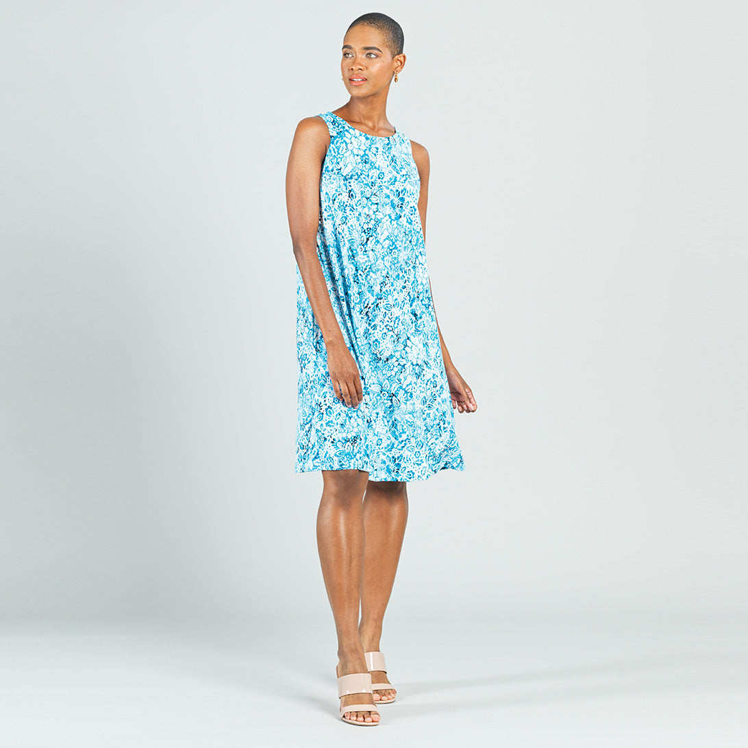 Textured Jewel Neck Swing Dress - Floral Rain-Turquoise - Final Sale!