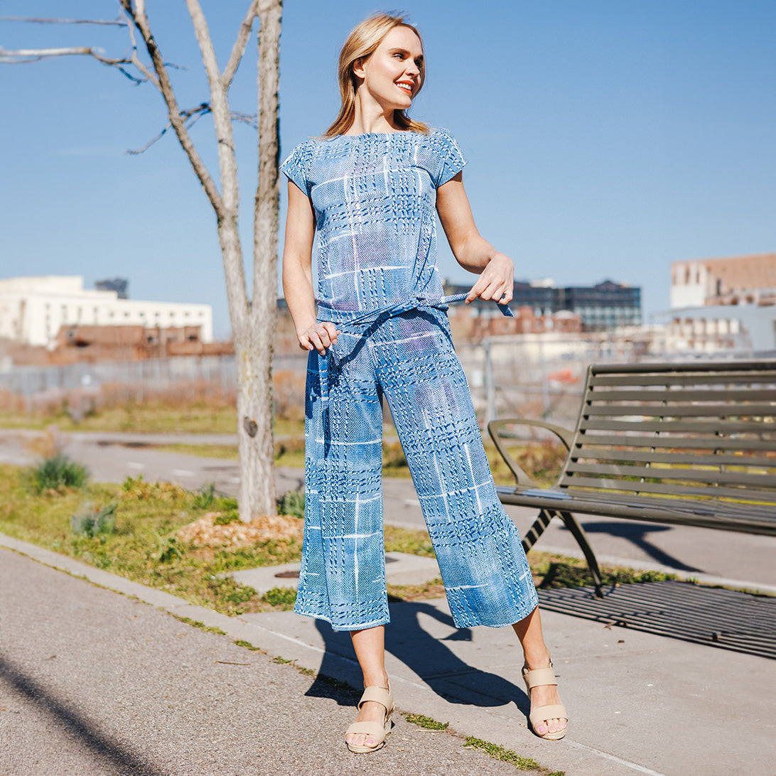 Textured Cap Sleeve Tie Hem Top - Denim Plaid - Final Sale!