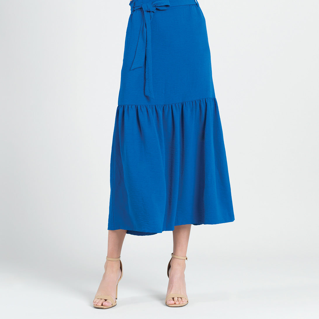 Soft Textured Rayon - Tie Waist Tiered Maxi Skirt - Cobalt - Final Sale!
