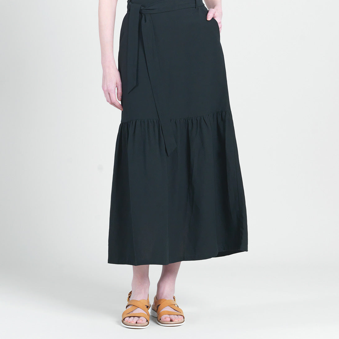 Linen Knit - Tie Waist Tiered Maxi Skirt - Black - Final Sale!