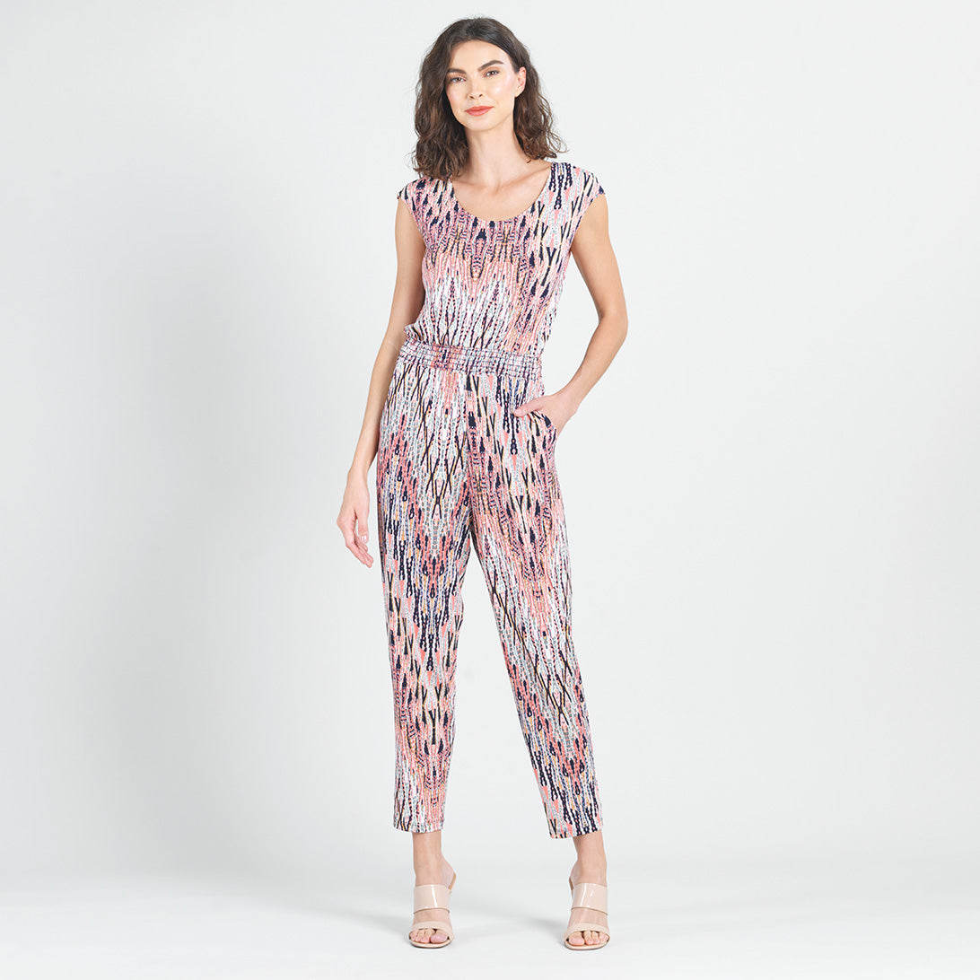 Our Boho Weave Back Cut Out Jogger Pocket Jumpsuit is a style you won't mind putting all your eggs in one basket for! Featuring a scoop neckline, cap sleeves, a 2" shirred waistband, a back v-bar cutout, sleek pockets, and ample breathing room in the hip and thigh area, that gradually tapers toward the ankle.